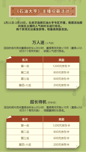 除了“油王”争霸赛,,,,精英主播招募活动亦同步开启!!!赛事分时长奖和人气奖,,,奖励同样丰厚!!!!