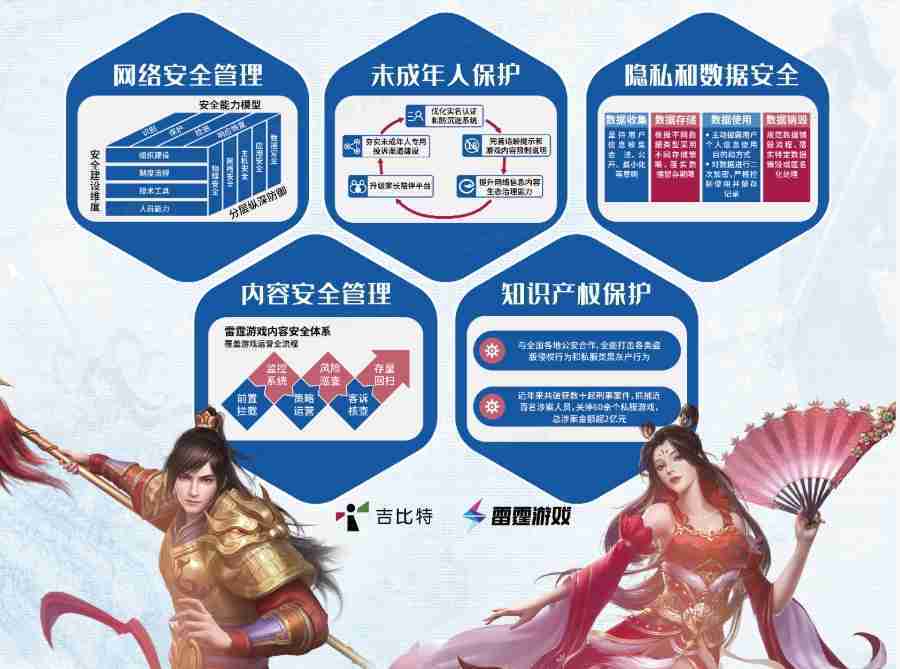 本次亚星管理展区以网络安全管理、、、内容安全管理、、、未成年人保护、、隐私和数据安全、、、、知识产权保护五个模块介绍公司游戏安全工作成果,,,体现亚星管理高度重视网络安全,,,严格遵守相关法律法规要求,,积极承担企业主体责任。。。。